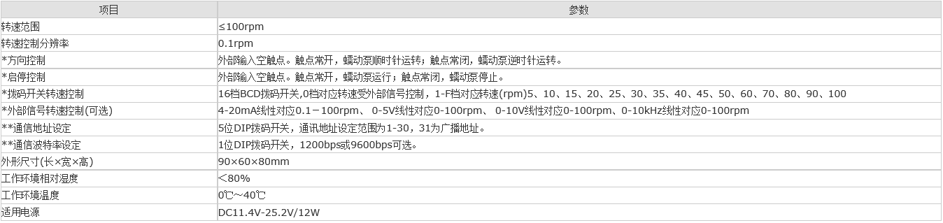 說明:*項目為撥碼開關(guān)結(jié)合外部信號控制方式所特有